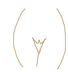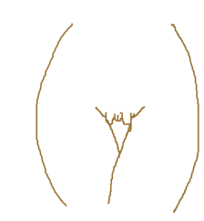 Denne vulvaen ligner på den like ovenfor. Derimot her er de ytre kjønnsleppene lengre fra hverandre noe som får den til å se litt mer 'åpen' ut og det indre kan bli sett.