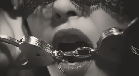 Han smekker til meg på rompa og trekker seg ut av meg. Kjenner det svir på baken og jeg er øm etter at han har kjørt meg så hardt. Han snur meg rundt, og drar opp toppen og BHen min, så brystene mine strutter ut, nå ligger jeg oppå håndjernene og kjenner de iskalde lenkene inntil den varme klamme kroppen min, fremdeles med beinene bøyd. Ganske ubehagelig stilling egentlig. Rekker ikke tenke noe mer på hvordan jeg ligger, for han sprer beina mine og klasker meg flere ganger på musa. Det stikker etterpå og jeg blir øm og varm. Så kjenner jeg hodet hans mellom låra, og den varme tunge pusten hans mot musa mi. Så en varm, våt tunge slikke meg over hele musa og på låra. Han gir en helt vill opplevelse, med en kombinasjon av tunge, tenner og magiske fingre. Den andre hånda kjenner jeg samtidig på brystene mine, og det iler plutselig til i ene brystet, hva er dette?! Jeg kjenner det klemmer til på ene nippelen og det slipper ikke tak, og jeg kjenner deretter hånda hans på den andre puppen samtidig som det fremdeles klemmer til på puppen. Han tar meg til klimaks og det iler gjennom hele kroppen, jeg skjelver og hyler til idet orgasmen river til gjennom hele kroppen og han gir seg ikke, jeg vrir meg unna og får snudd meg over på siden.