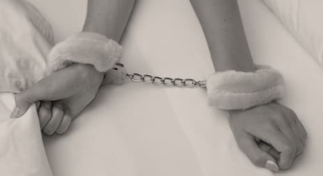 Truse hadde jeg latt være å ta på. Hendene hans er overalt, men når jeg forsøker å ta av ham klærene, får jeg et kjapt rapp over hendene. Han dytter meg inn på soverommet, og jeg legger meg ned på senga. Bena mine sprer jeg omtrent av seg selv, og nå kan jeg ikke vente mer. Jeg ber ham om å ta meg hardt, men han bare ler. Sakte binder han henda mine fast til hver sin sengepost, og gjør det samme med beina. Jeg kan ikke bevege dem en millimeter, og det er en herlig følelse. Mysteriemannen min drar en finger gjennom det gjennomvåte kjønnet mit, og jeg vrir meg av nytelse. Han finner klitten min og masserer den forsiktig. Det skal omtrent ikke mer til.