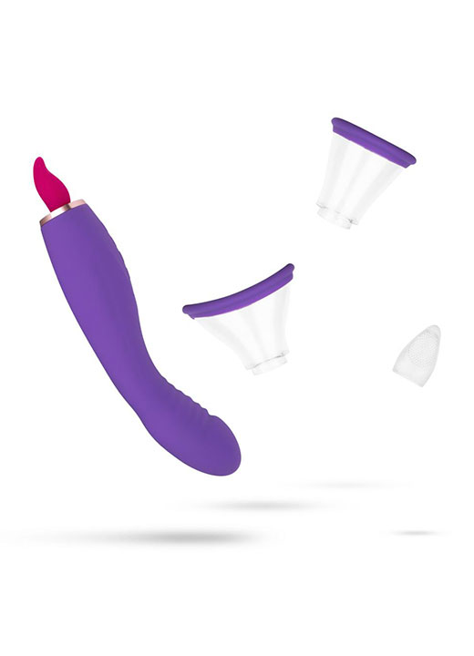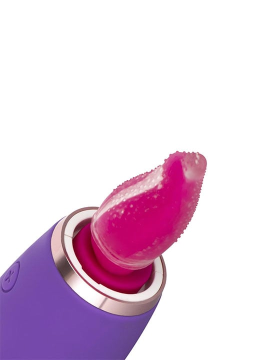 På den ene siden av leketøyet finner du en pirrende tunge som kan brukes mot klitoris, som beveger seg opp og ned og har 7 ulike intensitetsnivåer. På den andre enden av enheten finner du en g-punktvibrator, med 10 vibrasjonsmoduser og riller for ekstra nytelse. Med muligheten til å styre hver funksjon separat, kan du tilpasse opplevelsen akkurat slik du ønsker det!