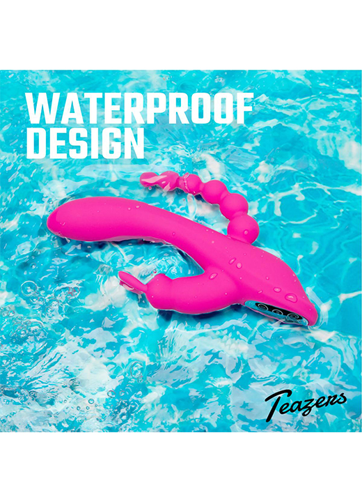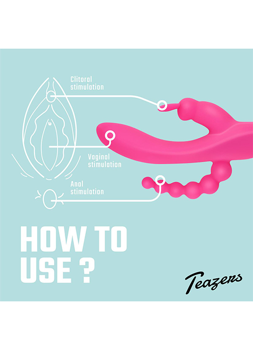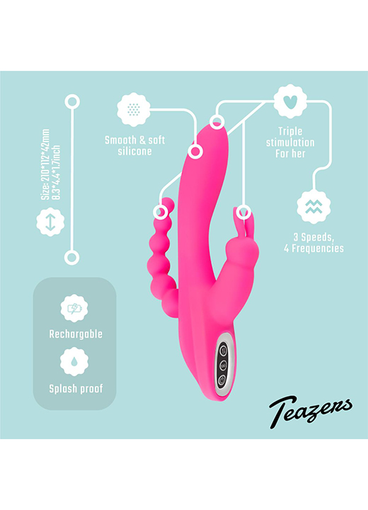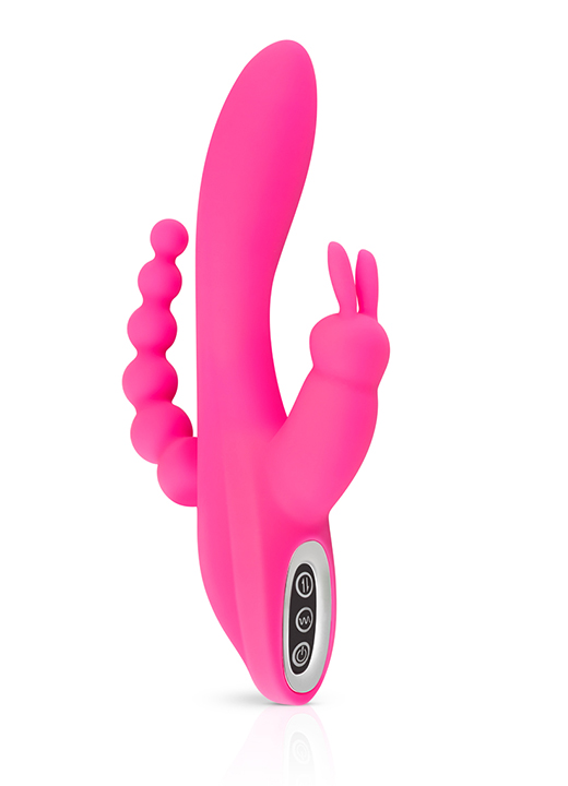Opplev dobbel stimulering med denne spennende rabbitvibratoren! Med et skaft designet for klitoris, skjeden og anus, får du flere leketøy i ett, og får oppleve de deilige kombinasjonsorgasmene!