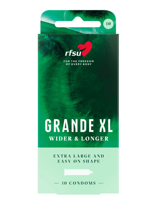 Overflaten på RFSU grande XL er glatt, og kondomene er transparente og behandlet med glidemiddel. Lateks-kondomene har en beholder i tuppen for sæd. Hvis det ønskes ytterligere glid, bør det være vann- og / eller silikonbasert.